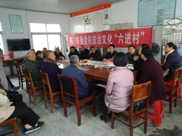 活动期间,除按户发放“七五”普法读本、办“平安法治建设宣传栏”以外,还专门捐赠了一批法治图书,在村群众服务活动中心专门开辟了法律图书角,为群众提供法治类专业书籍。活动现场,吴卫东教授为大家作了题为《新时代法治中国的重要部署》的法治专题辅导,从专业的角度,深入浅出的为村民们讲解了为什么要走法治道路,即依法治国的重要性,怎么抓好依法治国战略,以及如何提升农村工作的法制化水平。整堂辅导课有案例有数据,生动易懂,在座的村民和村干部都聆听的聚精会神。