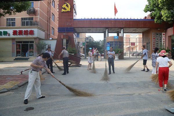活动中,教职工们与社区工作人员一起,顶烈日、冒酷暑,有的拿着扫帚、有的拿着撮箕、有的拿着铁锹,沿着各巷道清除了绿化带和路面的塑料袋、落叶、杂草、烟头等杂物,特别对卫生死角进行了一次彻底清除,还对社区庭院、房前屋后、边沟路坎的环境卫生进行了认真清扫。在党校路段,我们组织教职工和临街商户一道,共同开展创卫共建活动。