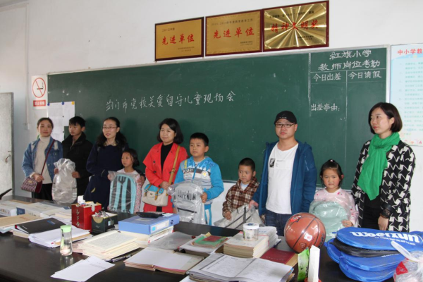 李俊同志代表我校向红旗中心小学赠送篮球、羽毛球等文体用品。校青年志愿服务队与留守儿童进行一对一结对帮扶。每名留守儿童指定一名结对关爱的志愿者,其中四名团干部带头与留守儿童监护人、老师进行座谈,了解掌握留守儿童在学习和心理等方面的情况,通过赠送学习资料等形式,帮助他们解决学习上的困难。