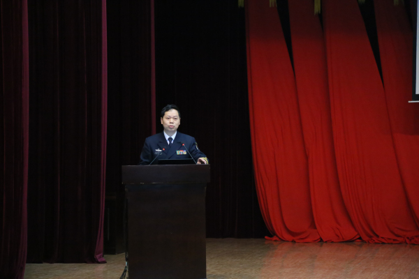 3月18日上午,海军工程大学装备保障指挥教研室教授、军事学博士生导师、湖北省"国防教育宣讲团"成员朱建冲教授来我校为全体学员作了题为《我国海洋战略与海上安全》的专题讲座。