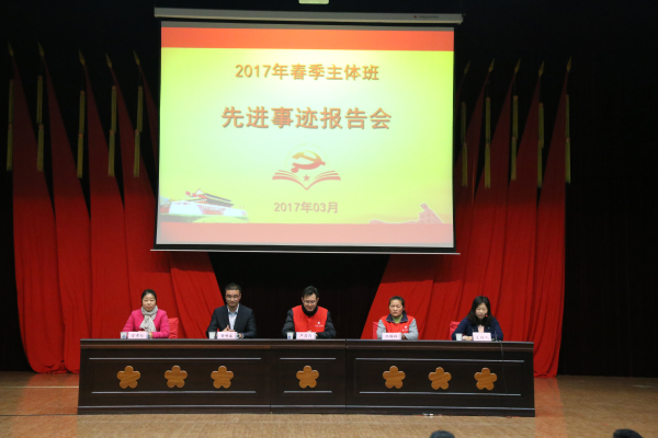 3月28日上午,我校在学术报告厅举办先进事迹报告会。我市优秀共产党员代表官章红、黄峰威、严昌筠,市道德模范陈梅林同志走上党校讲台,讲授自己坚定理想信念的心路历程。春季主体班全体学员及党校教职工参会。
