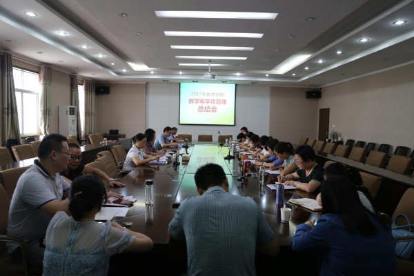 6月27日上午,我校2017年春季学期教学和学员管理总结会在四楼会议室举行。全体专兼职教师和组织员,教务处、组织处全体人员参加会议,副校长李眉荣同志出席会议并讲话。