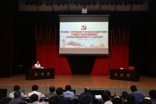 9月20日上午,市委常委、纪委书记刘辉同志以“学习贯彻《关于新形势下党内政治生活若干准则》《中国共产党党内监督条例》 以优异的成绩迎接党的十九大胜利召开”为题,为我校秋季主体班学员上了一堂精彩纷呈的党课。