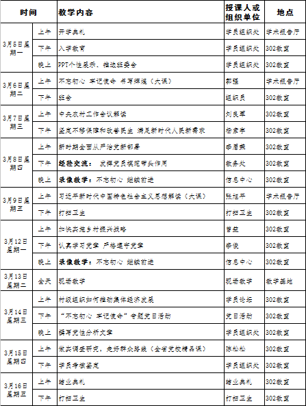 村(社区)党组织书记培训班第一期课表