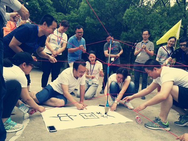 此次拓展训练以激发个人潜能、增强团队意识为目标,在教练员带领下,全体学员被分为两个小组,分别开展了团队展示、弯管吹气球、齐心书法、信任圆凳等多个经典的拓展培训项目,组与组之间进行竞争,学员们兴致盎然,积极参与,组员之间密切合作,精心配合,为了使本组能在竞赛中胜出,学员们都使出浑身解数。游戏结束后,教练员召集学员就参加拓展活动的体会和感受进行简短交流。
